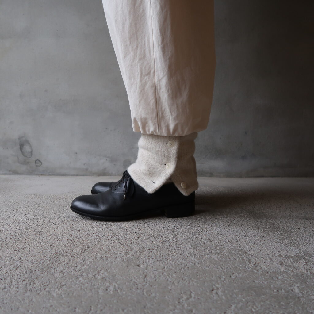 こちらのアンクルカバーの年内お届け分のオンライン予約の受付は、先日終了いたしましたが、アトリエショップの方では、10/9(木)の展示会終了まで、引き続き承っております。
