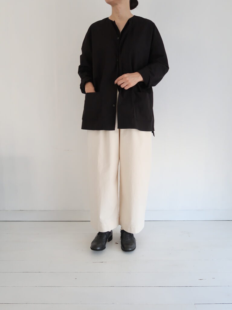 no-collar fly front shirt ( what is there ) qua : cotton 100% col : off white size : 1 ¥ 22,000- ( tax included )