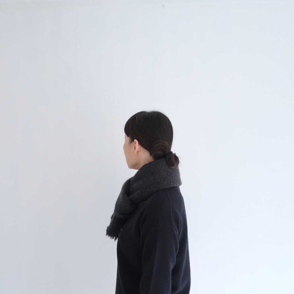 サイズ感は、大判のものよりも、ややコンパクトに気軽に巻いて頂けるサイズになっています。