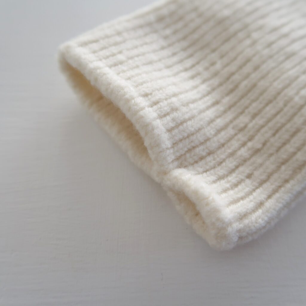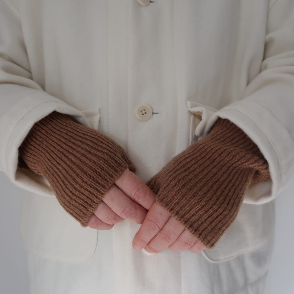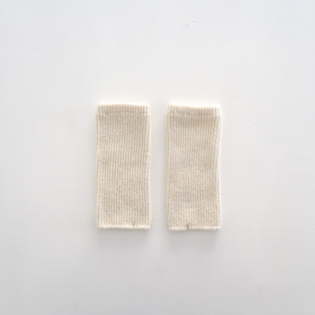 ニットの袖を伸ばしたような雰囲気で、親指を通す穴のある、筒状のシンプルな作り。