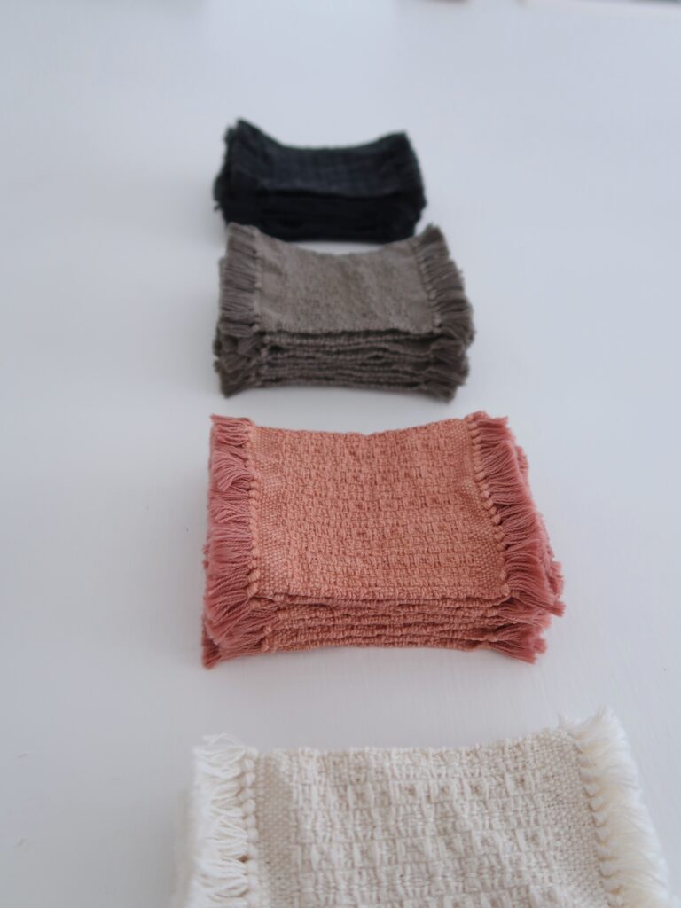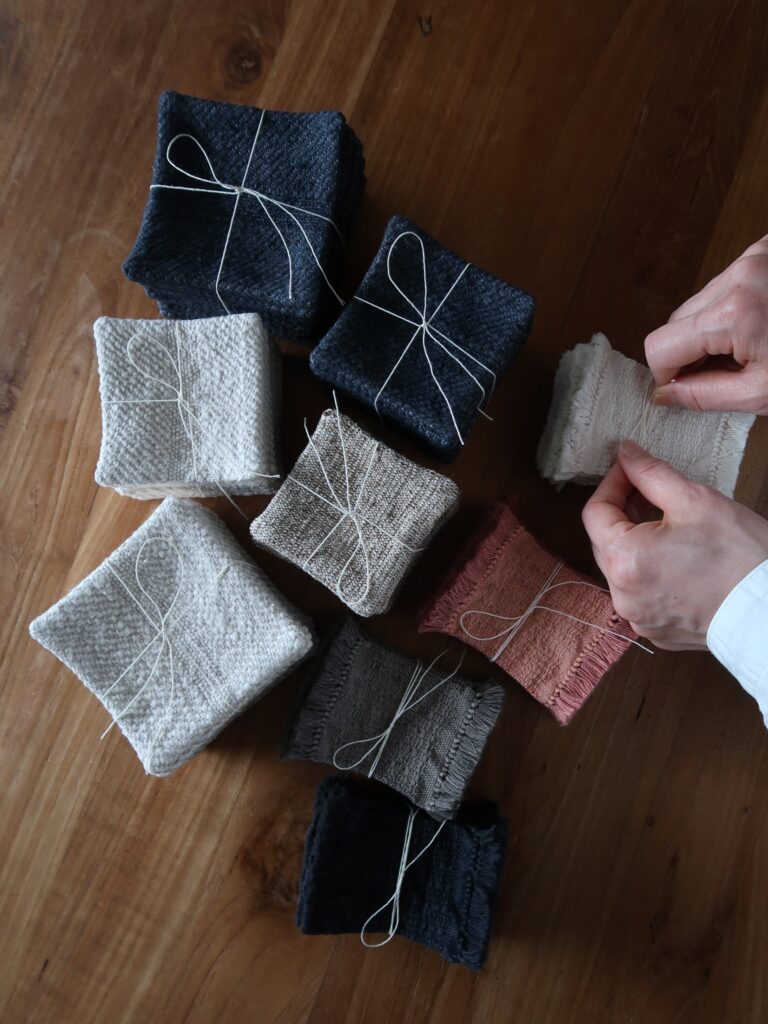 北海道 小樽の 器と暮らしのもののお店 yukimichi さんへ、cloth piece 数種とガラ紡のコースター、タッサーシルクのコースターなどを追加でお送りさせていただきました。